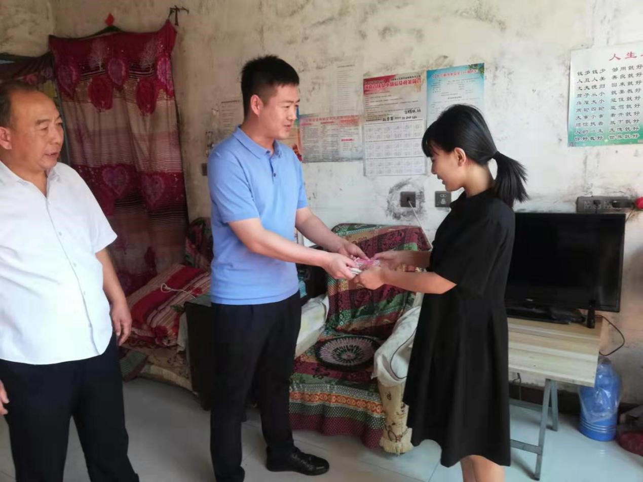金秋將至,又是莘莘學(xué)子收獲的季節(jié),為進(jìn)一步弘揚(yáng)重視教育、尊重知識(shí)、鼓勵(lì)成才的社會(huì)風(fēng)氣,幫助貧困大學(xué)生順利進(jìn)入大學(xué)校園。 8月31日,公司總經(jīng)理助理曲笑輝,工會(huì)主席路建存在申村黨支部書記郭慶法的陪同下,深入申村貧困家庭郭亭于家中,將8000元助學(xué)金送到利用高考結(jié)束的空閑時(shí)間剛剛打工回來(lái)的郭亭于手中。