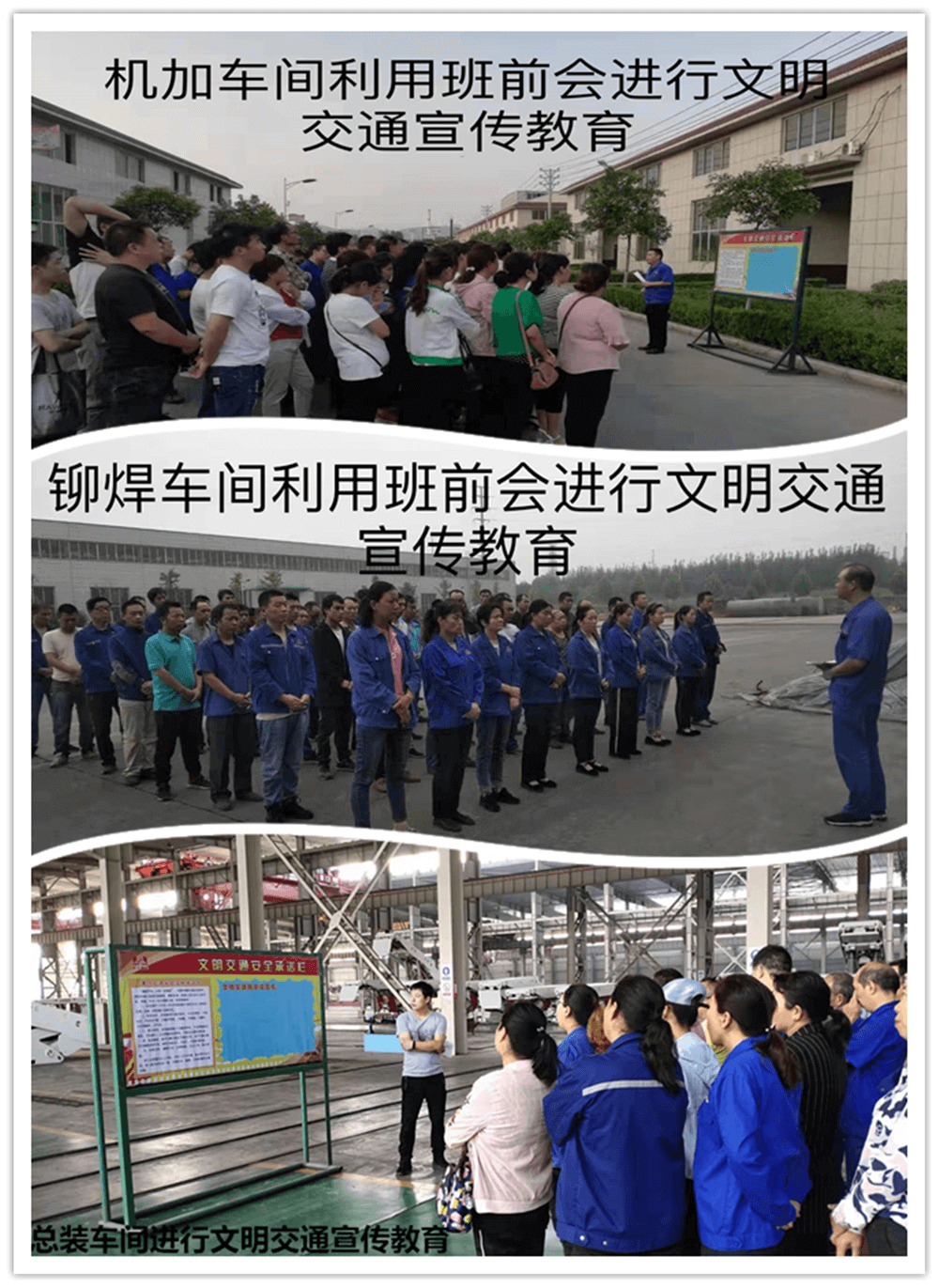 在全體員工中廣泛開展學(xué)習(xí)“文明交通宣傳教育月活動方案”。各單位利用各種會議、板報及微信群等形式,對員工貫徹學(xué)習(xí)《林州重機集團關(guān)于開展文明交通宣傳教育月活動方案》文件精神,使每位員工對活動要求做到人人皆知,特別是“六大文明交通行為”、“六大交通陋習(xí)”、“六大危險駕駛行為”,每位員工都應(yīng)知悉知。