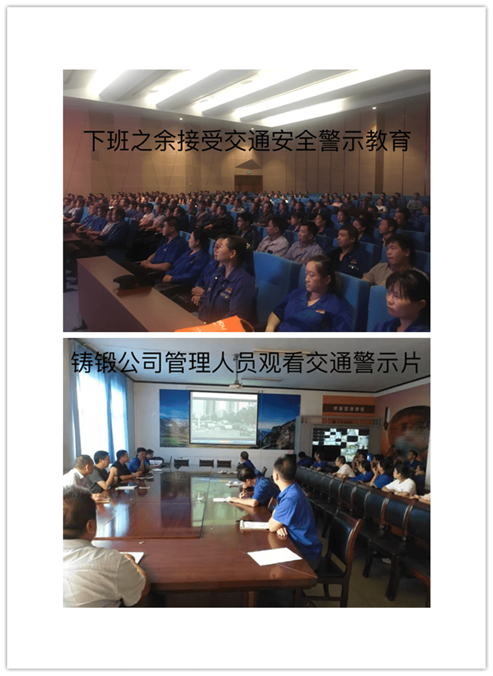 開展警示片宣傳教育活動。集團公司按單位分三次組織1000余名員工觀看交通事故警示教育片,集團公司子公司林鋼、鑄鍛也積極按照方案要求組織收看教育片,同時各單位還利用本部門的微信工作群進行轉(zhuǎn)發(fā)收看,達到警示教育全面覆蓋之目的。