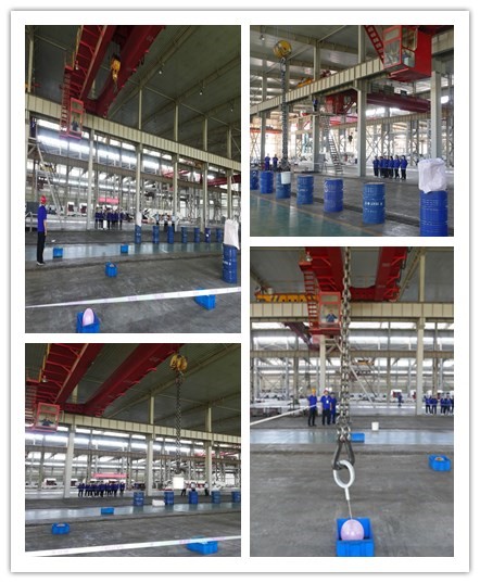 起重機械操作技能比賽規定參賽人員操作32t雙梁起重機,按照規定線路將吊裝物起吊,走S線避開障礙物將吊裝物順利運回指定位置完成第 一項,走Z線用吊裝物準確撞下橫塊完成的第二項,扎破筐中氣球回到指定位置完成比賽,用時更少、失誤更少者為勝。來自總裝車間的起重操作工韓雪萍憑借平穩的心態、精 湛的技藝奪得第 一名。