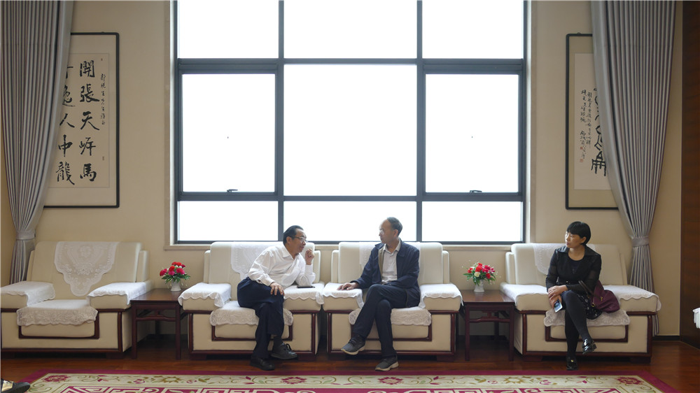 儀式結束后, 林州市總工會主席栗旺生與公司董事長郭現生就企業文化陣地建設進行了座談交流與探討。