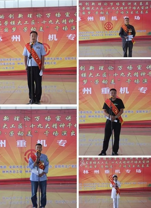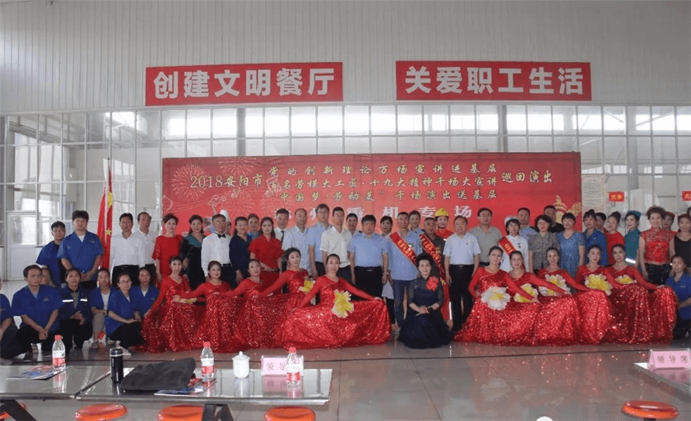 6月6日下午,安陽市黨的創(chuàng)新理論萬場宣講進(jìn)基層、百名勞模大工匠?十九大精神千場大宣講暨“中國夢(mèng) 勞動(dòng)美”千場演出送基層巡回演出活動(dòng)走進(jìn)林州重機(jī)。河南省委宣傳部副部長尹書博,省委宣傳部理論處副處長楊小強(qiáng),省委宣傳部理論教育講師團(tuán)副團(tuán)長趙琳,安陽市委宣傳部副部長冀曉東,安陽市委宣傳部理論科長龍晨曦,安陽市總工會(huì)宣教部部長張艾敏,林州市委常委、宣傳部長王獻(xiàn)青,林州市總工會(huì)主席栗旺生,副主席張曉云, 公司黨委副書記、副總經(jīng)理趙正斌,黨委委員、工會(huì)主席路建存及職工代表300余人等出席活動(dòng)。